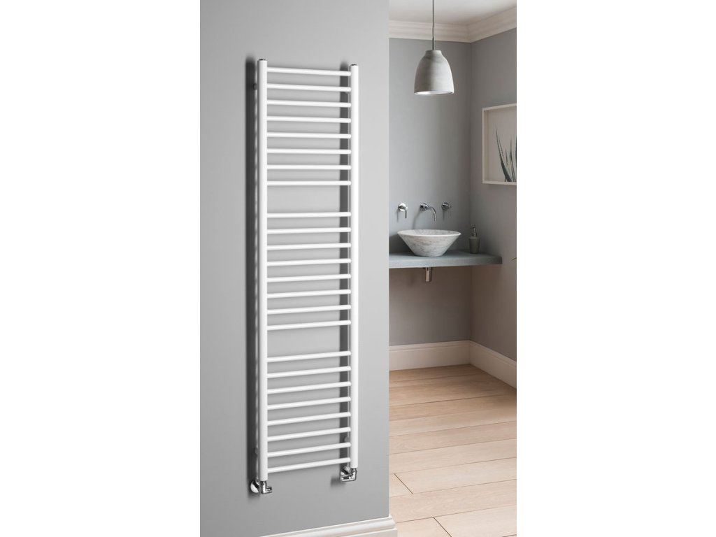 Elegantní koupelnový radiátor ze správně kombinovaných průměrů vodorovných a svislých trubek. Krása v jednoduchosti skloubená s atraktivním barevným provedením.