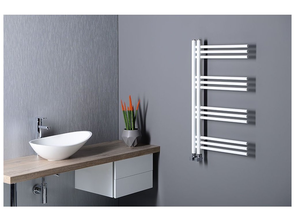 Designově tvarované koupelnové otopné těleso s výjimečným vzhledem je vyrobeno z ocelových trubek. U radiátoru oceníte zejména jeho praktičnost, díky své konstrukci umožňuje jednoduché a pohodlné zavěšení ručníků ze strany na horizontální tyče. Praktická rozteč 50 mm středového připojení umožňuje kombinovat s designovými ventily z naší nabídky i v kombinaci s elektrickou topnou tyčí.