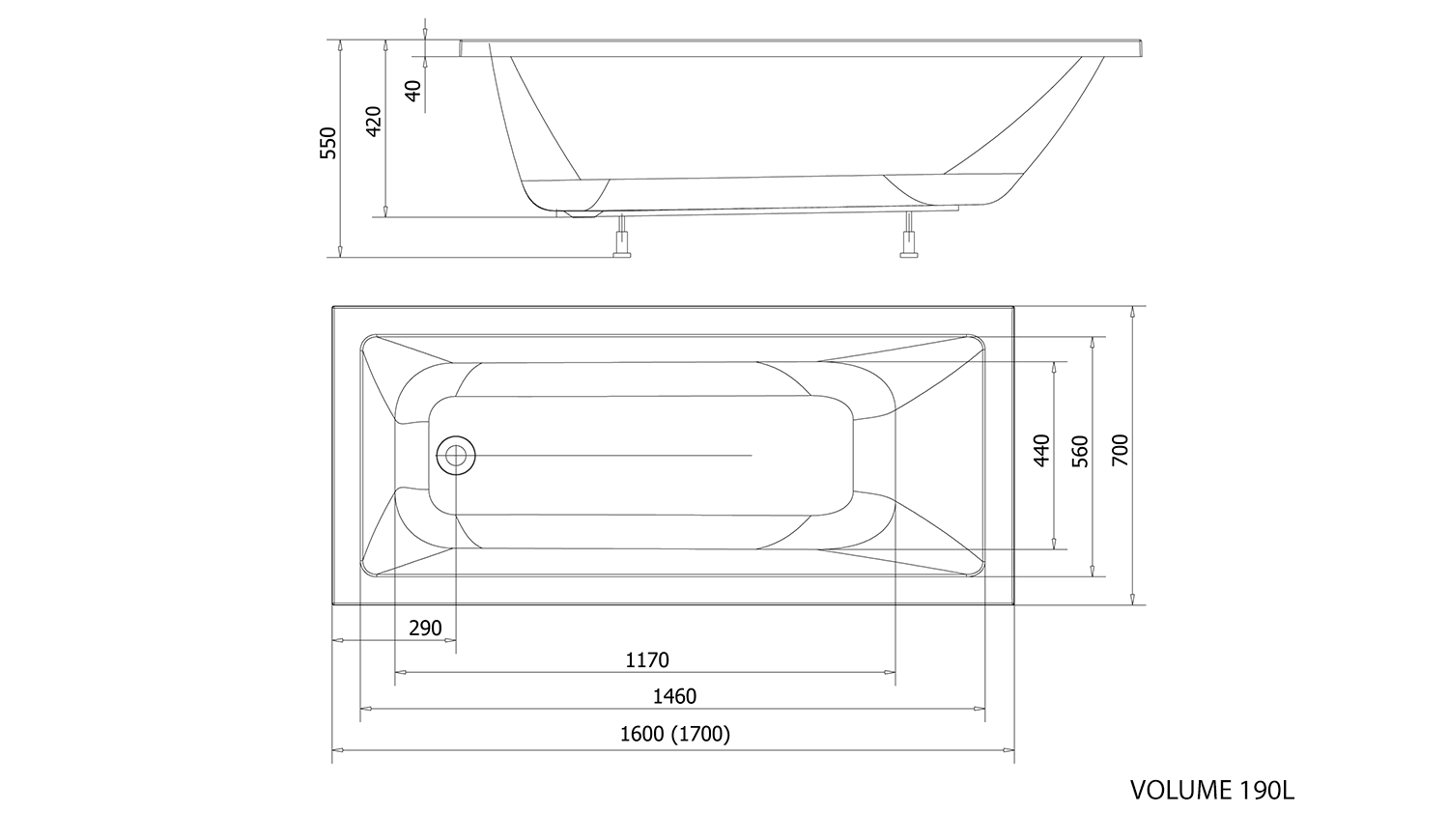 DOUBRAVA obdélníková vana 170x70x42cm, bílá
