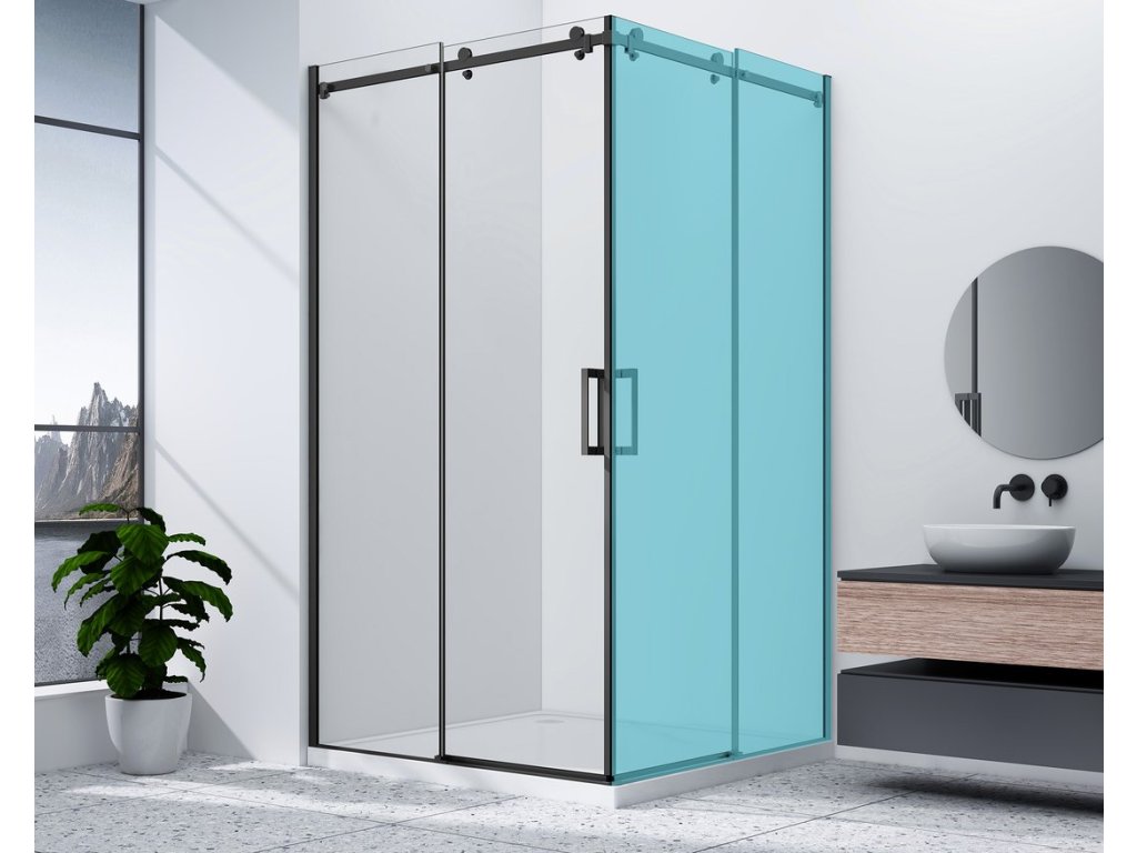 DRAGON BLACK sprchové posuvné dveře rohový vstup 900mm, čiré sklo