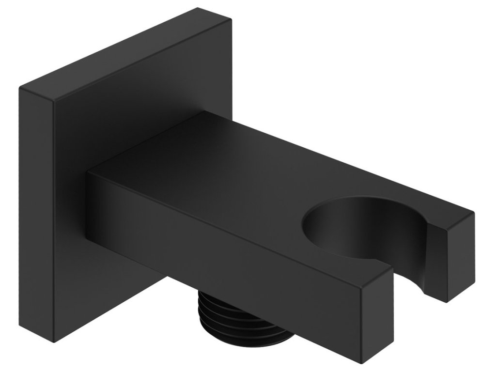 Držák sprchy hranatý, pevný, s vyústěním, černá mat
