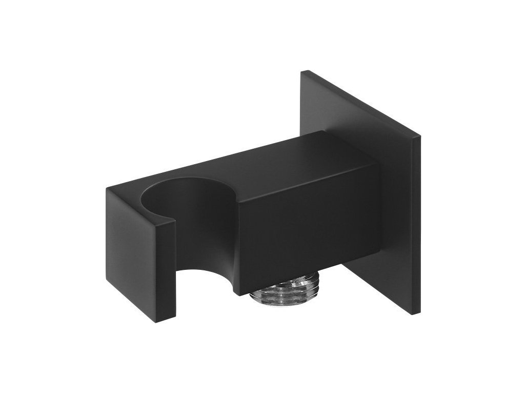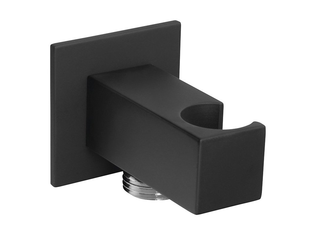 Držák sprchy hranatý, pevný, s vyústěním, černá mat