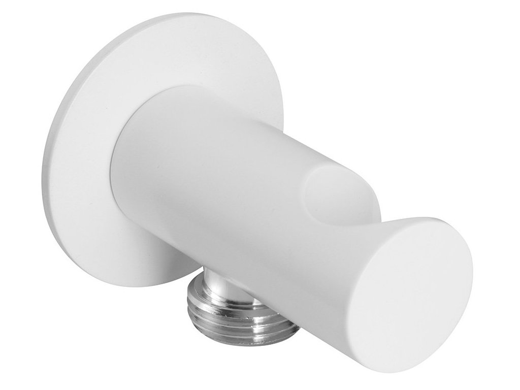 Držák sprchy kulatý, pevný, s vyústěním, bílá mat