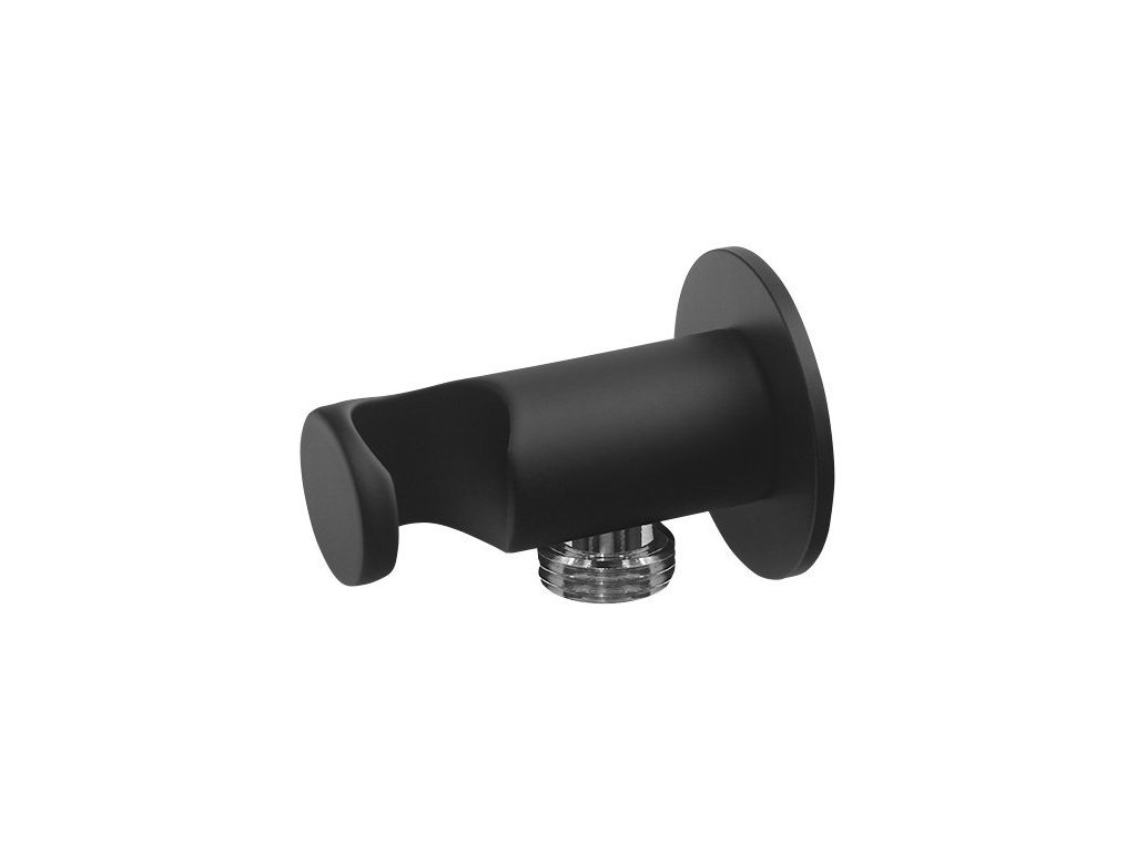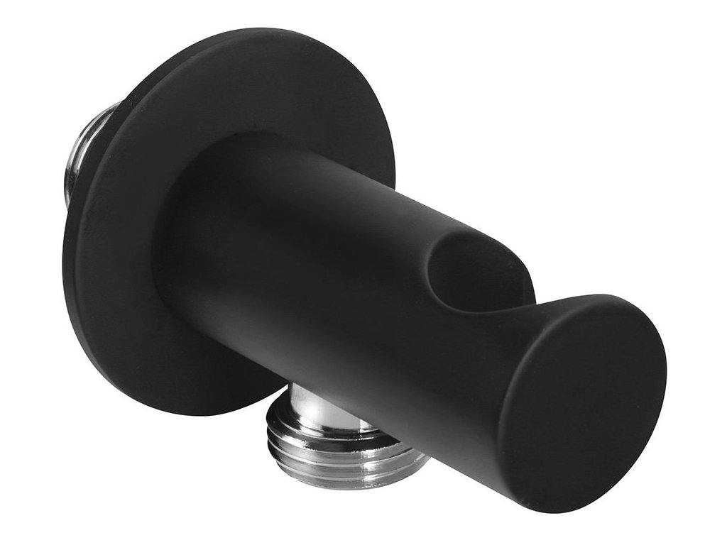 Držák sprchy kulatý, pevný, s vyústěním, černá mat