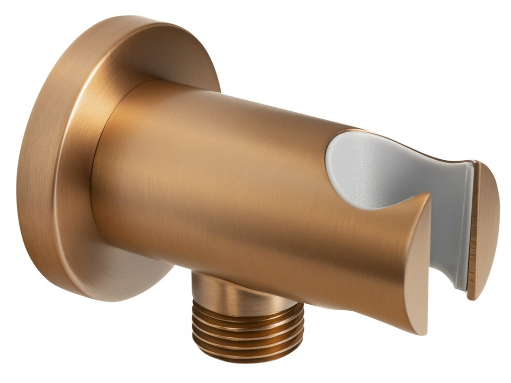 Držák sprchy kulatý, pevný, s vyústěním, měď mat