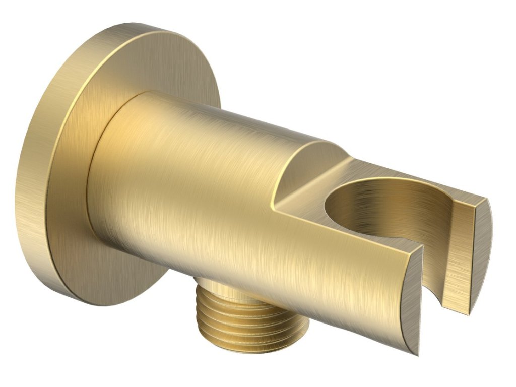 Držák sprchy kulatý, pevný, s vyústěním, zlato mat