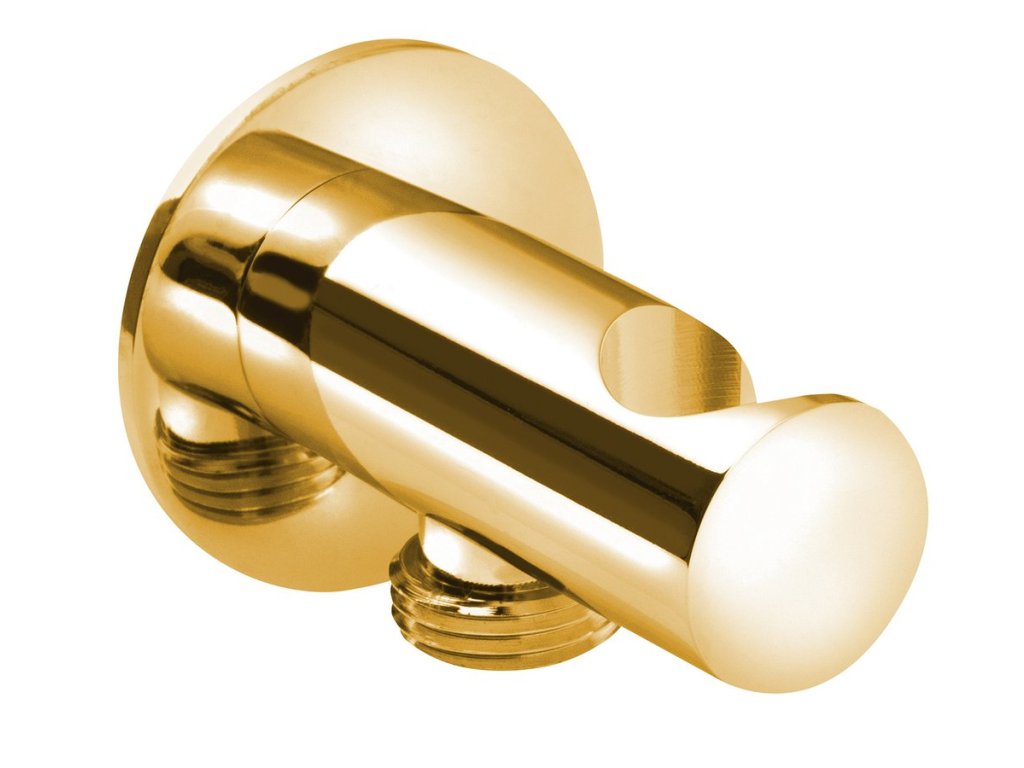 Držák sprchy kulatý, pevný, s vyústěním, zlato