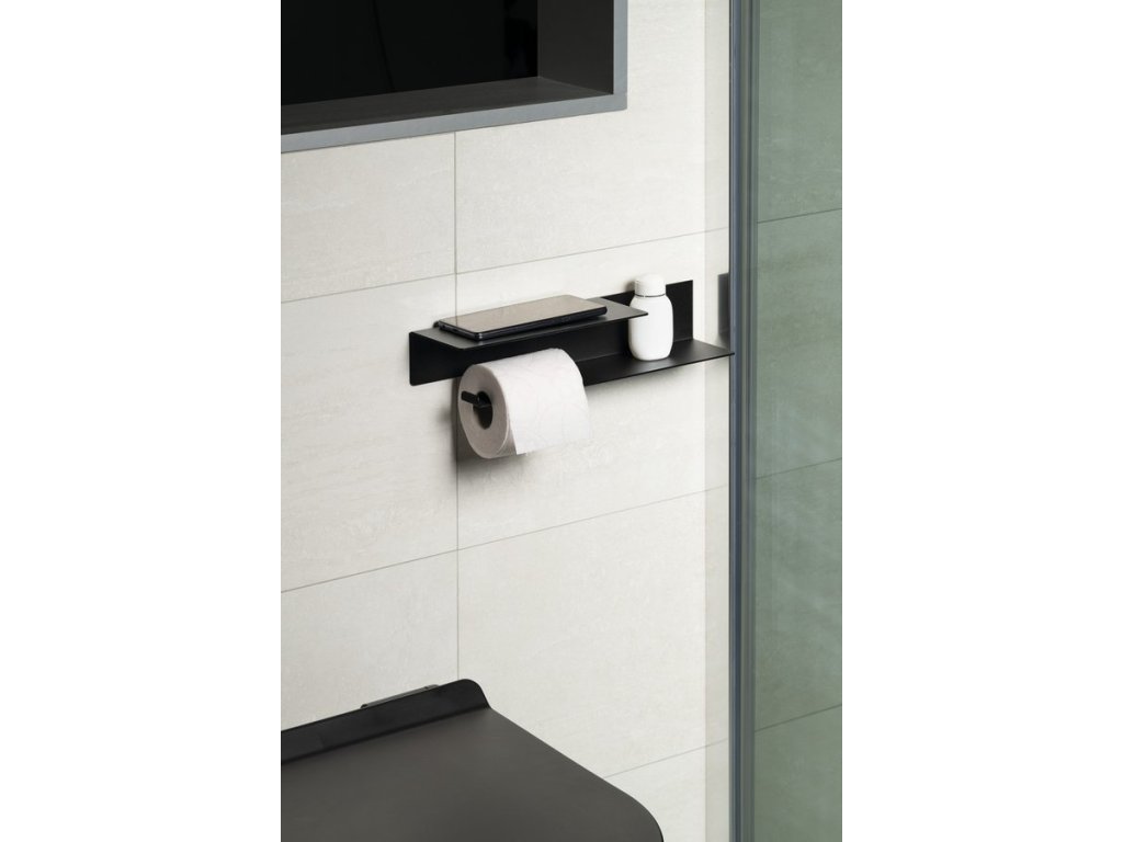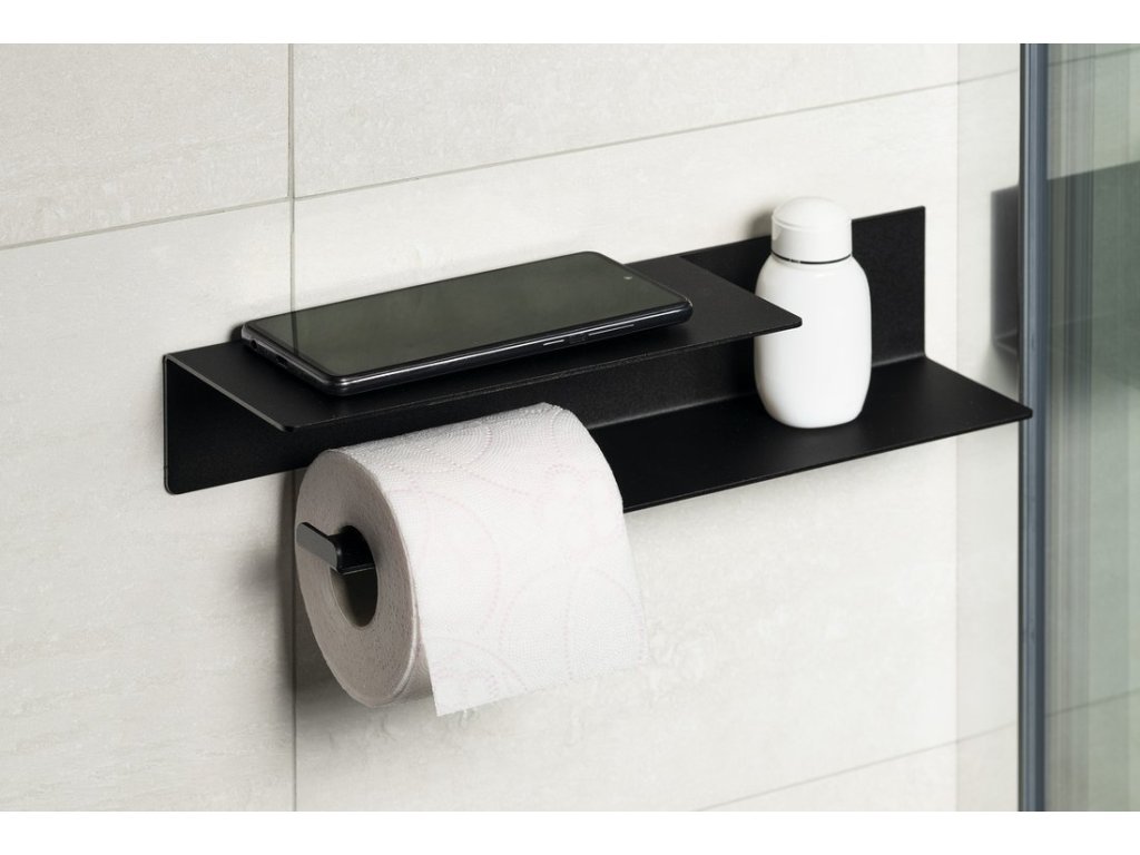 Držák toaletního papíru s poličkou š.35cm, černá mat