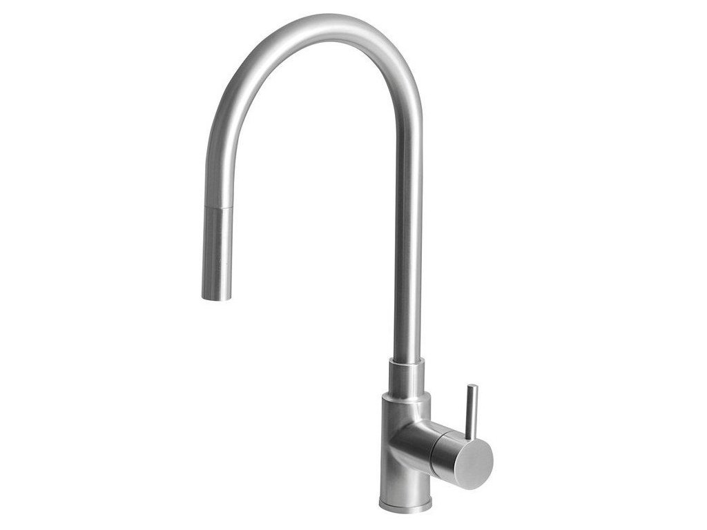 DUNA stojánková dřezová baterie s výsuvnou sprškou, nerez mat