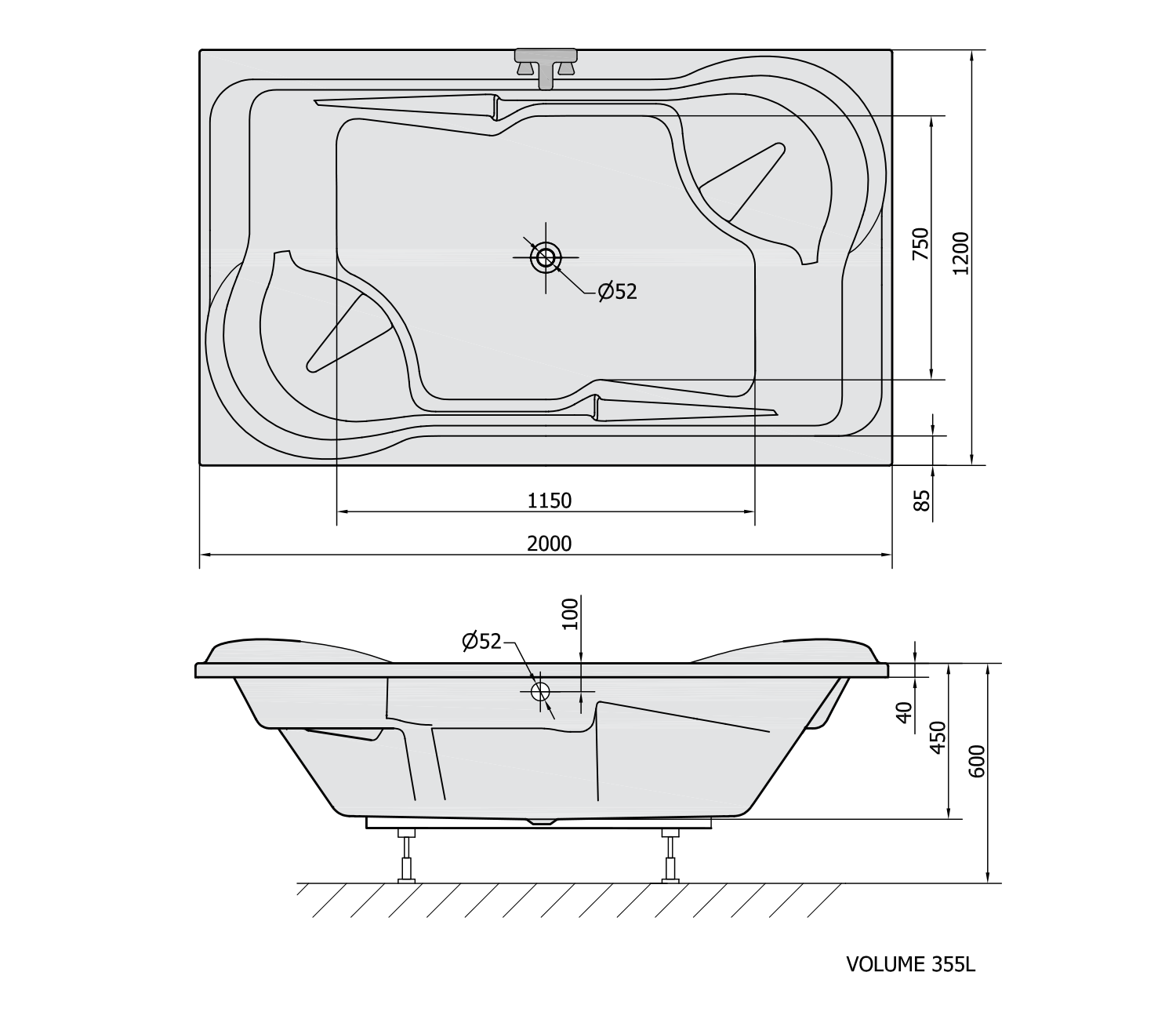 DUO obdélníková vana 200x120x45cm, bílá