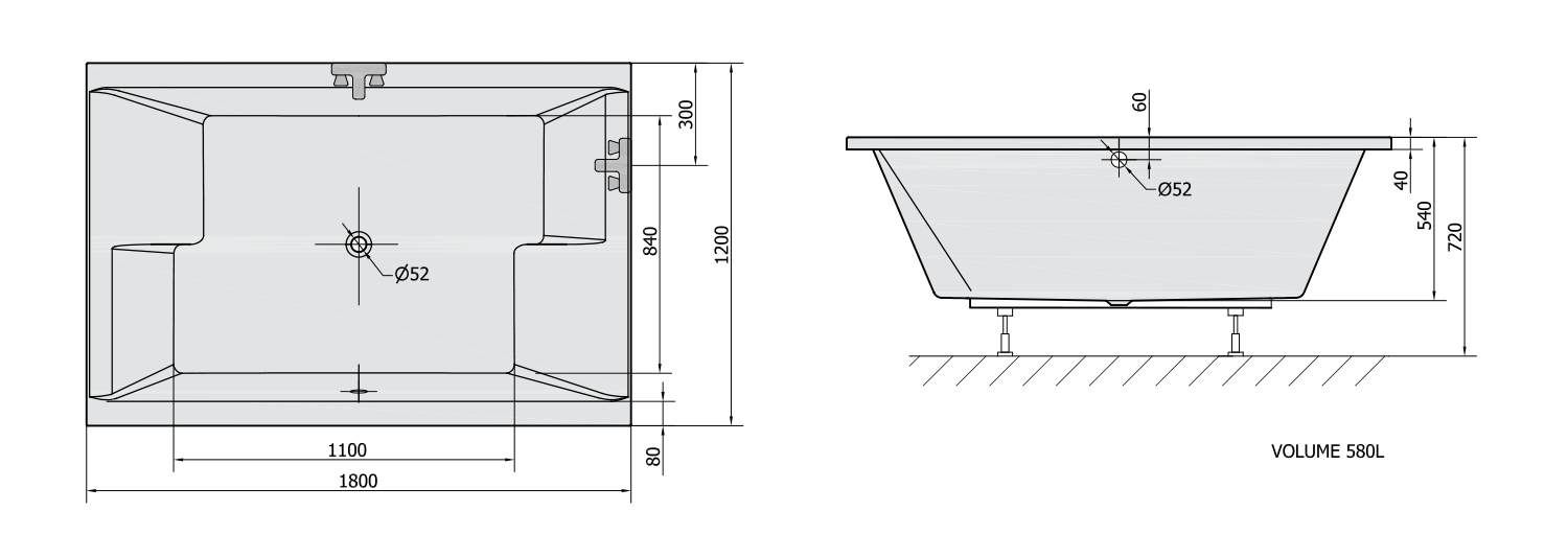 DUPLA obdélníková vana 180x120x54cm, bílá