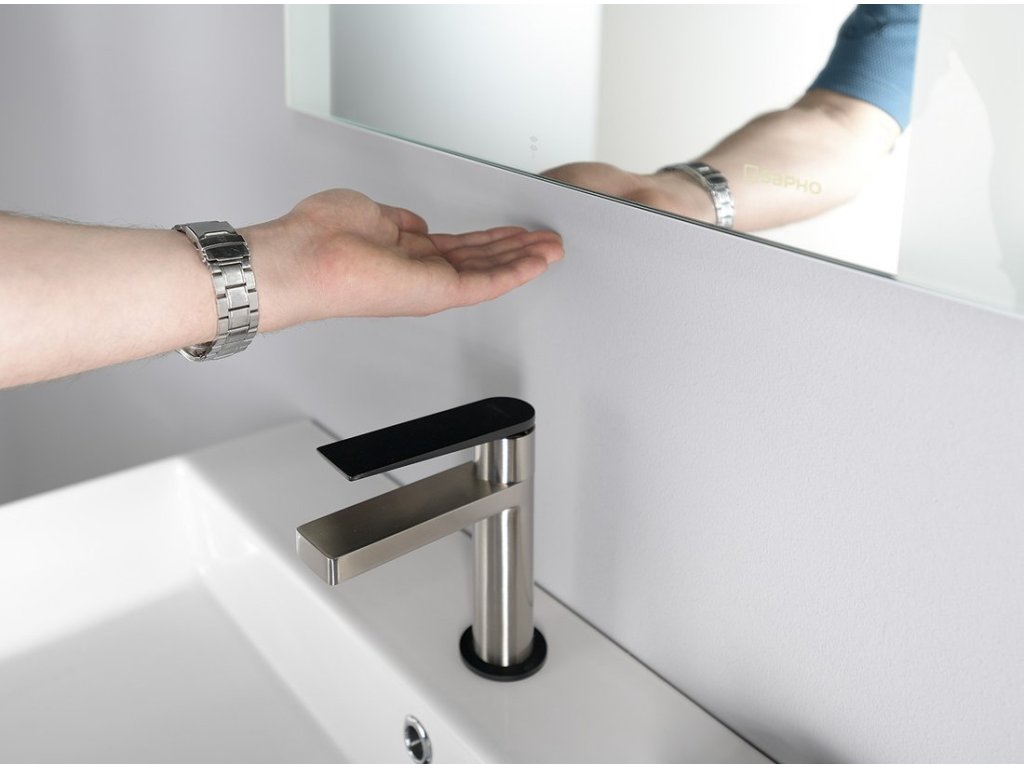 - Ovládání osvětlení zrcadla pomocí bezdotykového IR sensoru (min. vzdálenost pevných předmětů od senzoru musí být 150 mm).