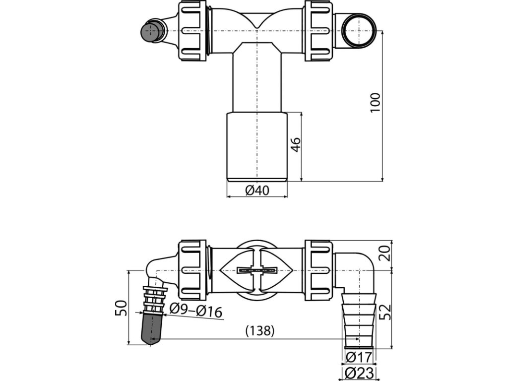 Dvě kolínka k napojení spotřebičů – pračky, myčky, sušičky, kotle, klimatizace, rekuperace, atd.