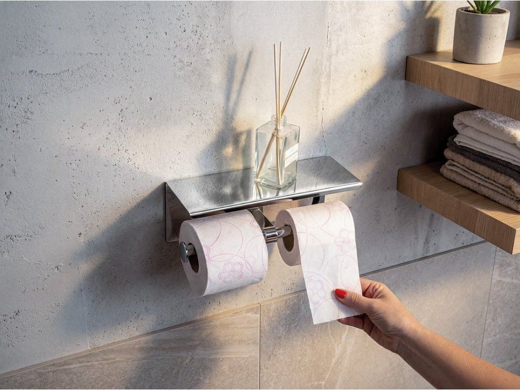 Dvojitý držák toaletního papíru s poličkou 30cm, chrom