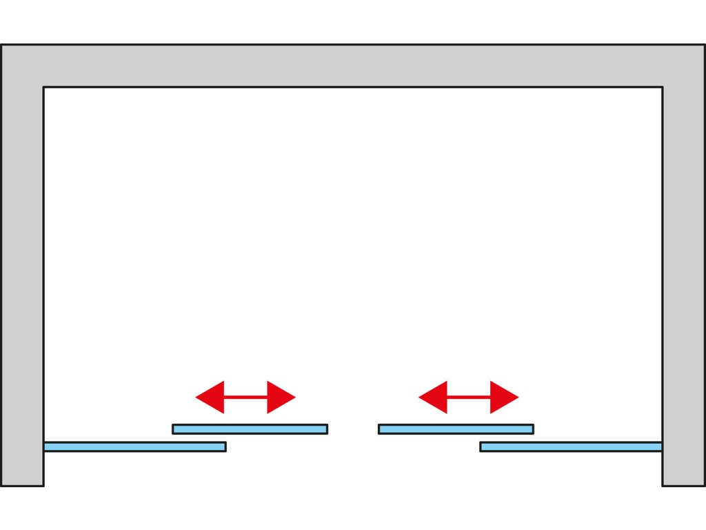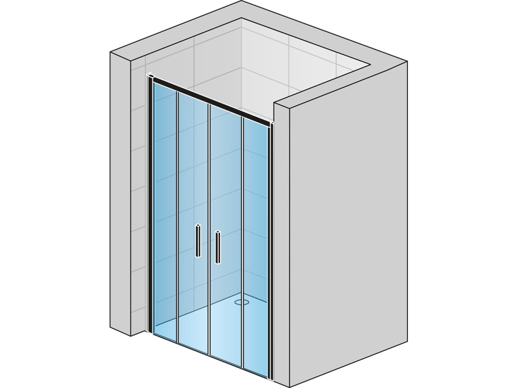 Dvoudílné posuvné dveře s 2 pevnými stěnami v rovině TLS41200607