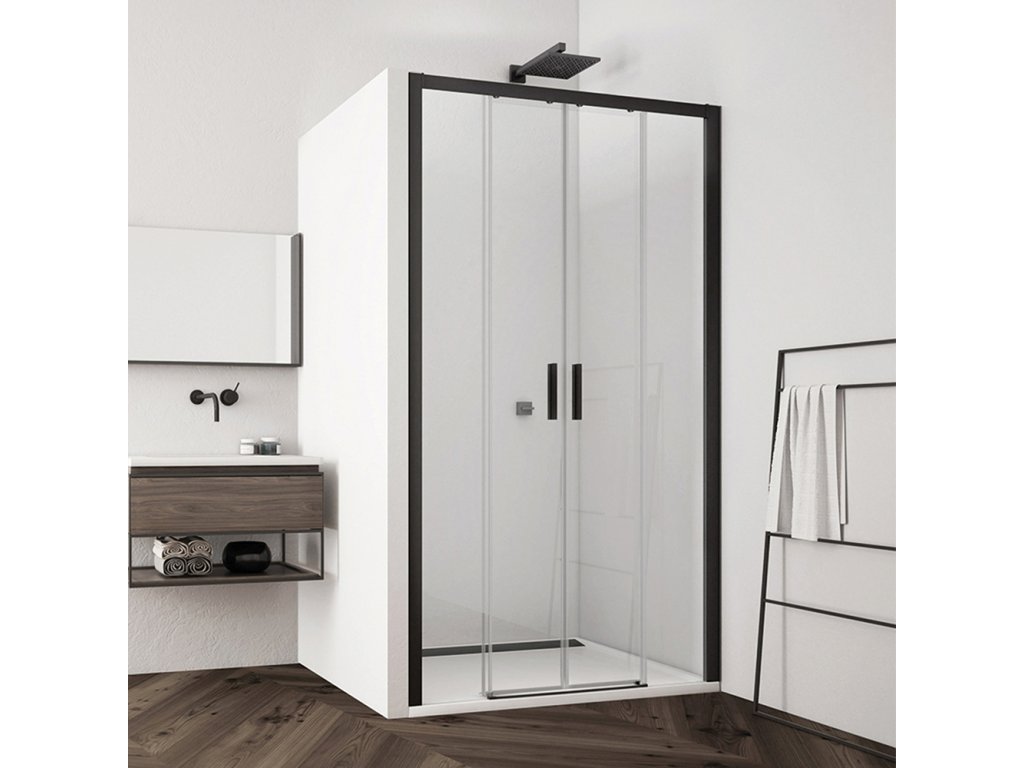 Sprchová zástěna RONAL TOP LINE S BLACK LINE s měkkými symetrickými tvary a elegantní černou barvou profilů i madel. Garance luxusu, komfortu a spolehlivosti. 6mm bezpečnostní sklo s antiplakovou úpravou Aquaperle. Magnetické těsnění, 10mm prahová lišta. Sprchové dveře lze kombinovat s boční stěnou TOPF2 pro rohový vstup nebo dvěma bočními stěnami TOPF2 - U-montáž.Doplňkové parametry