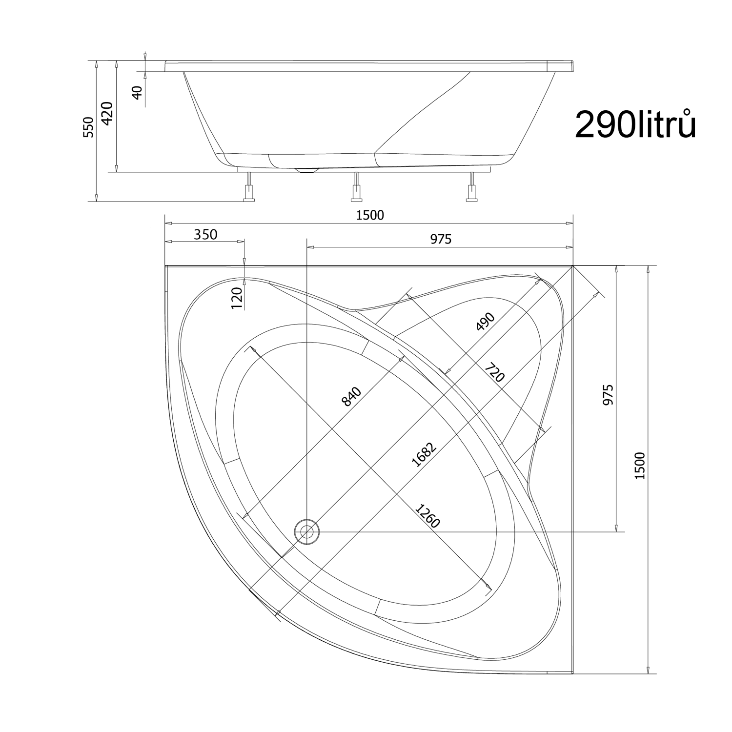 DYJE rohová vana 150x150x42cm, bílá