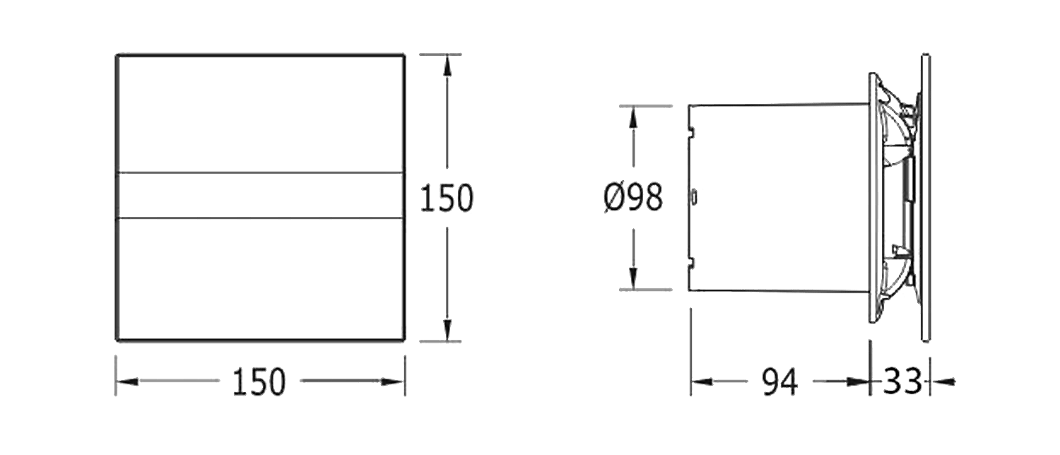 E-100 GB koupelnový ventilátor axiální, 8W, potrubí 100mm, černá