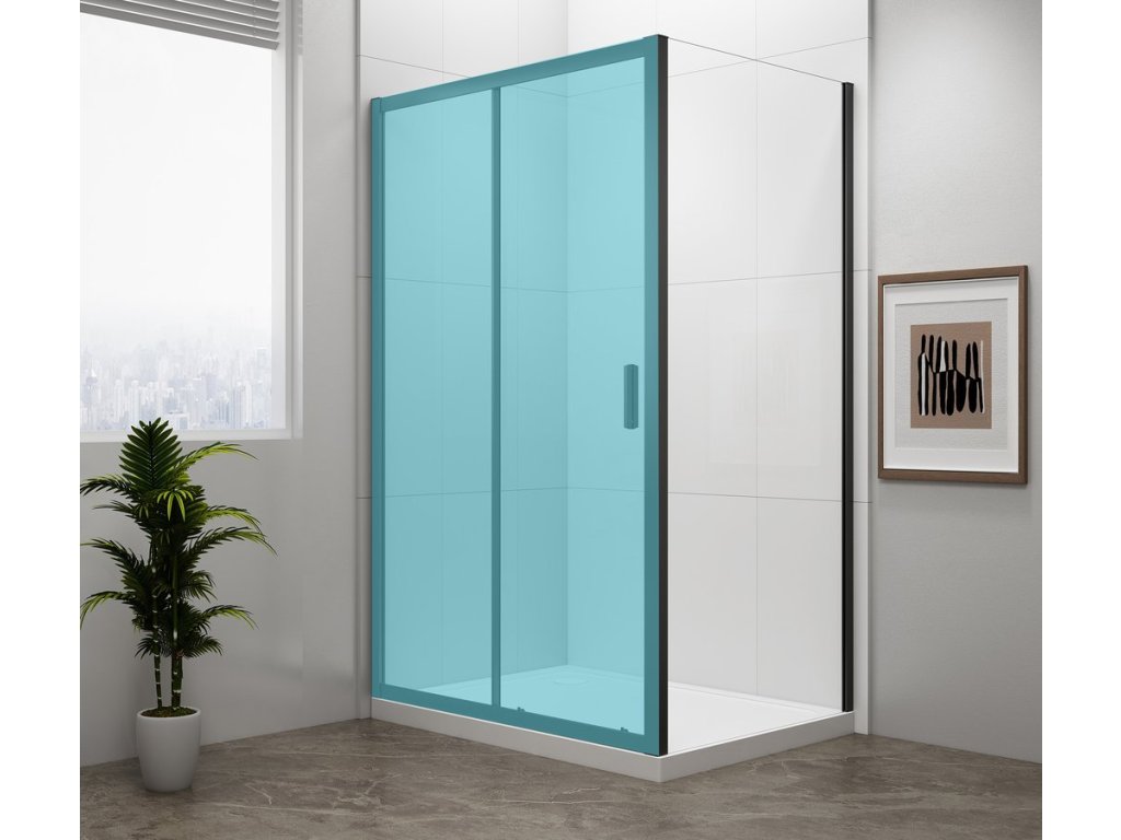 - Čtvercové zástěny s dvoudílnými posuvnými dveřmi, rohový vstup