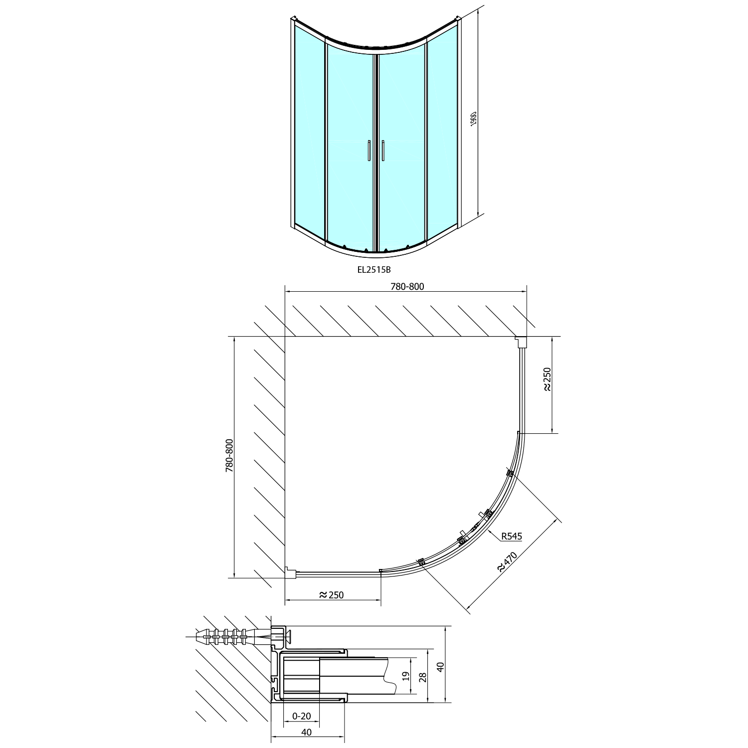- Instalační rozměr dveří do niky lze díky rozšiřovacímu profilu EL825 zvětšit o 25 mm na každou stranu, celkem o 50 mm