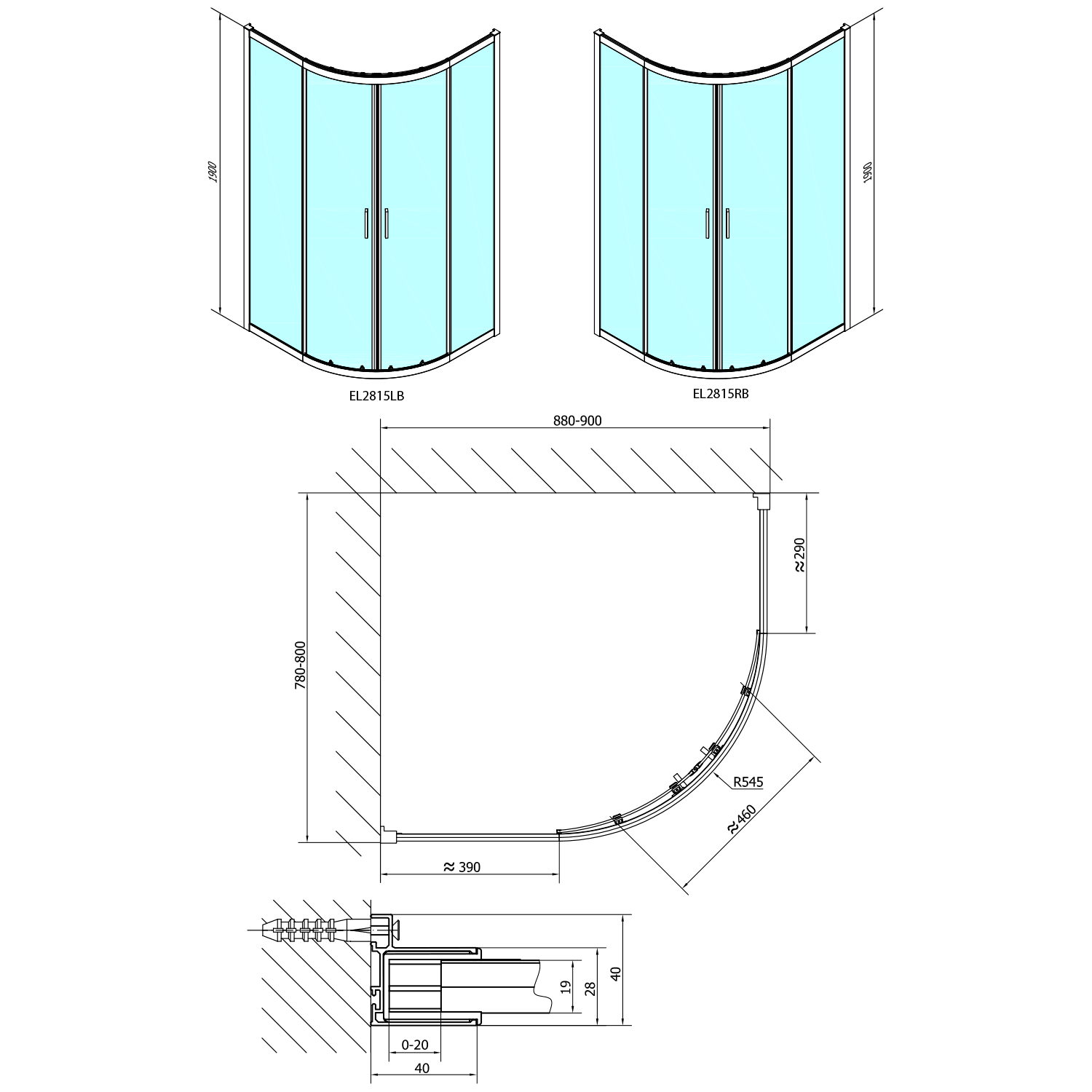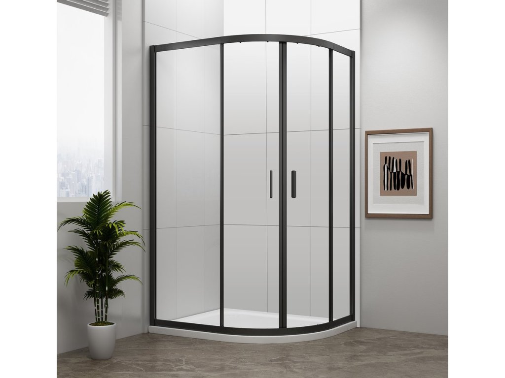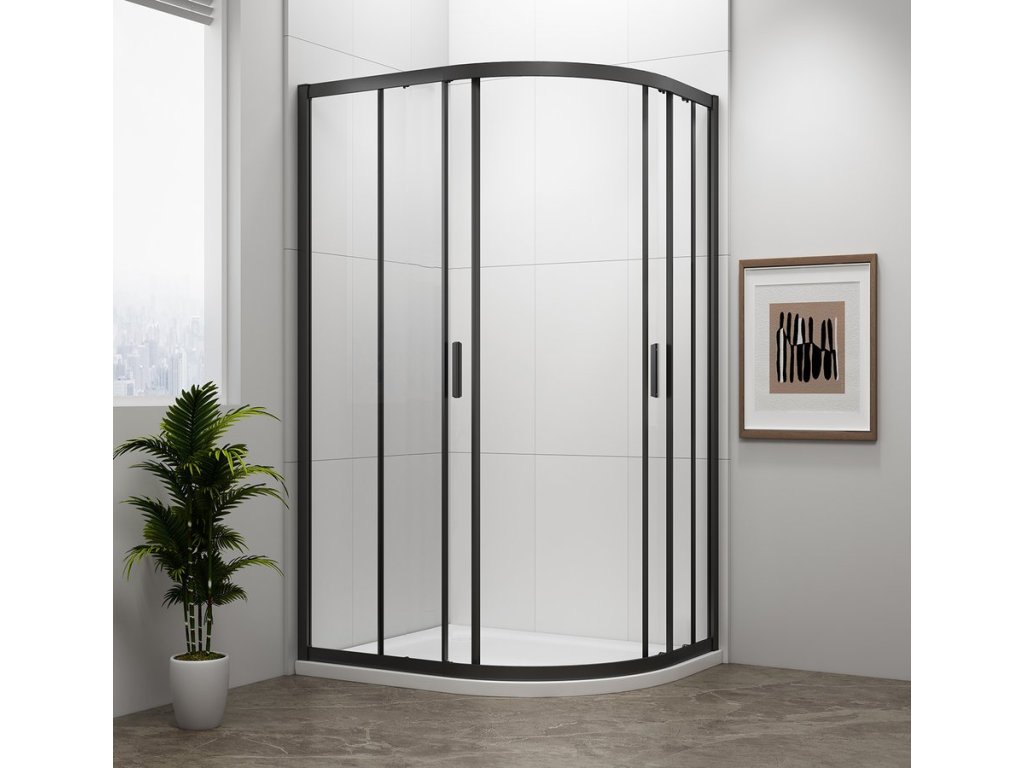 EASY BLACK čtvrtkruhová sprchová zástěna 900x800mm, L/R, čiré sklo