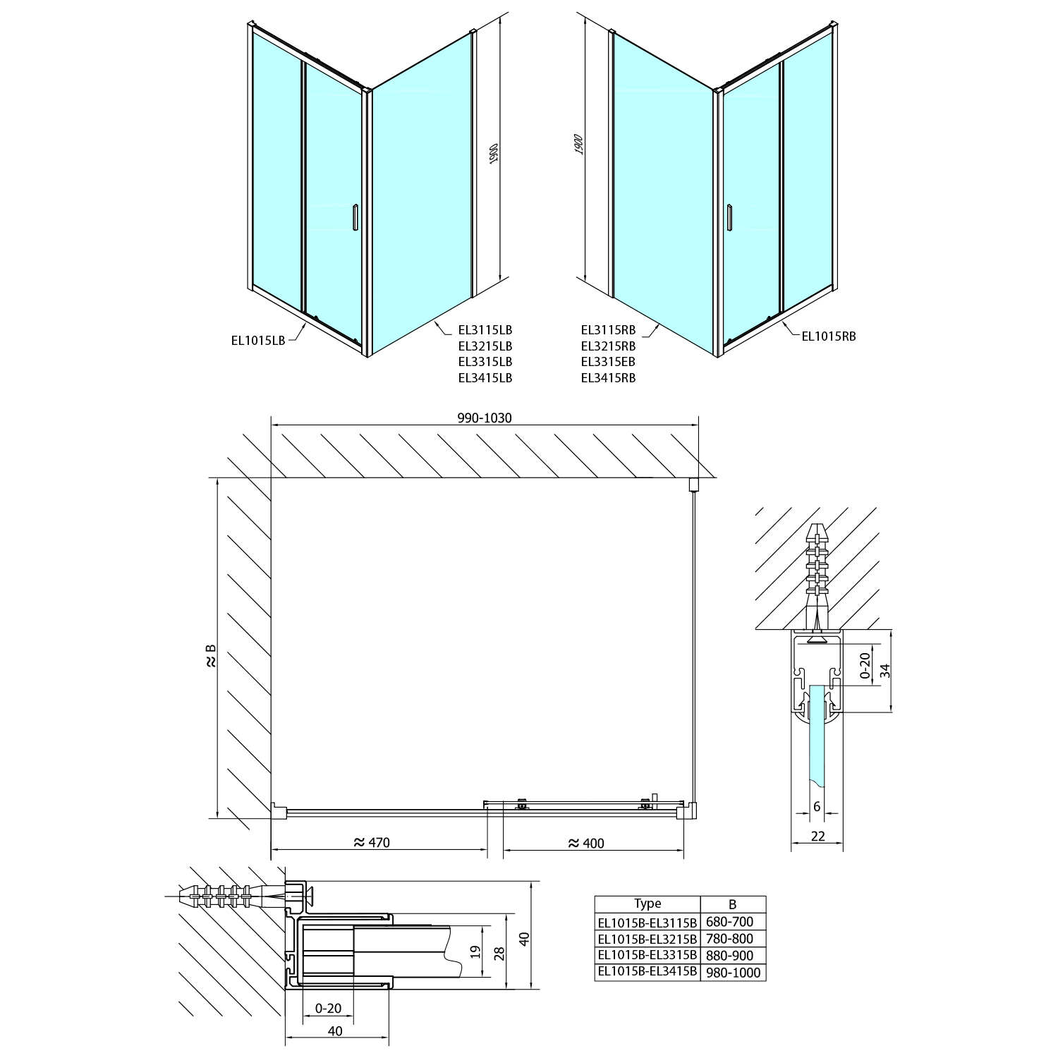 - Boční stěnu lze ke všem typům dveří instalovat z levé i pravé strany, bez ohledu na stranu otevírání dveří