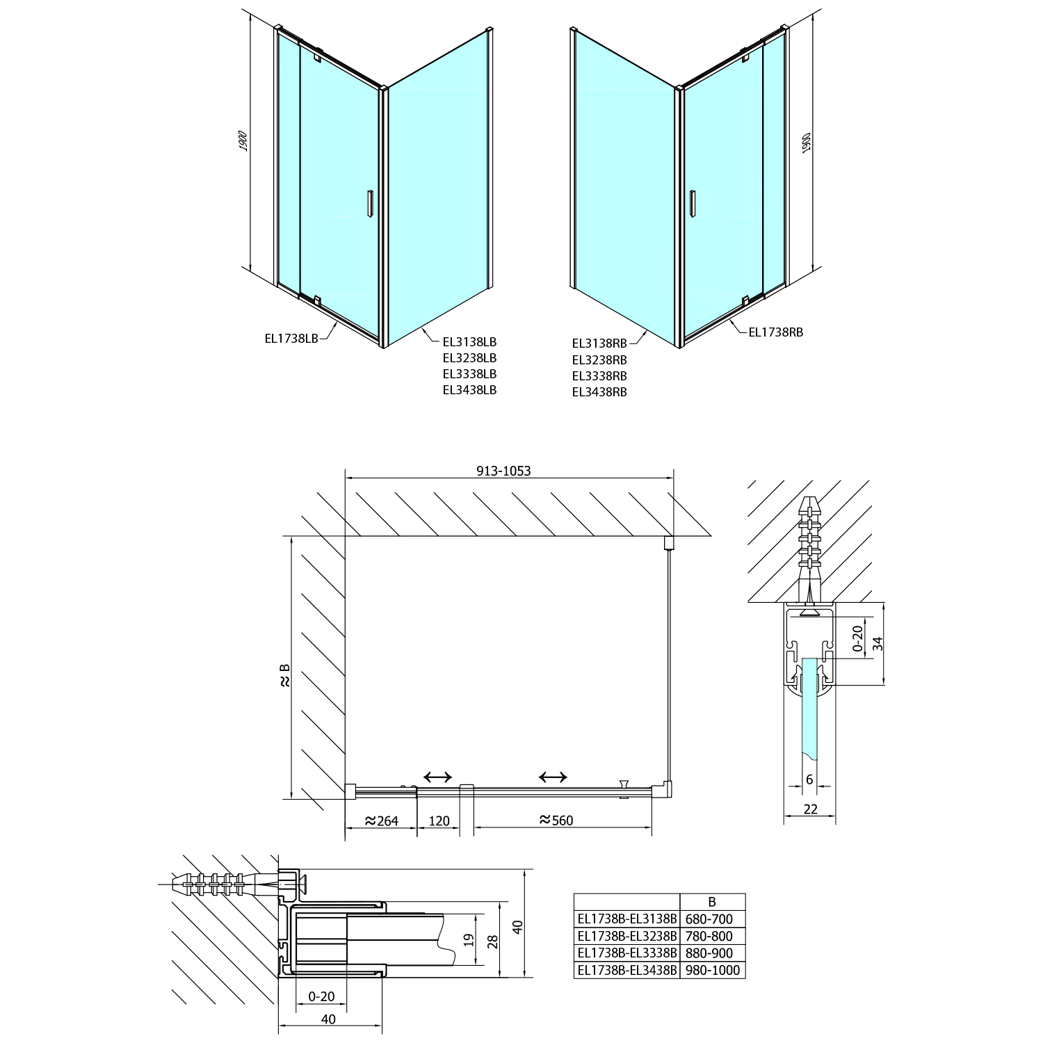 - Boční stěnu lze ke všem typům dveří instalovat z levé i pravé strany, bez ohledu na stranu otevírání dveří