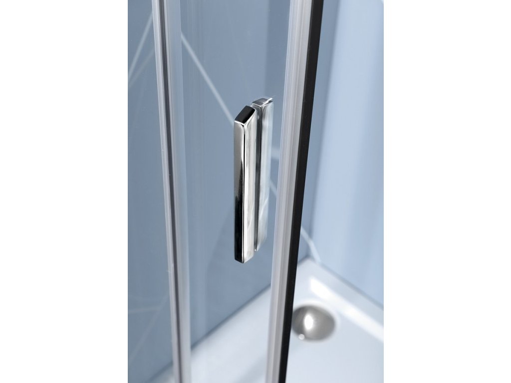 - Čtvercové zástěny s dvoudílnými posuvnými dveřmi, rohový vstup