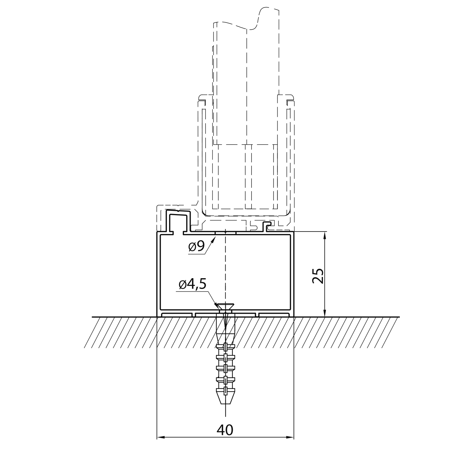 Profil se instaluje na stěnu pod původní stěnový profil. Díky své konstrukci dokonale pasuje na stěnový profil a rám zástěny zachovává svou kompaktnost a dokonalou těsnost. Profil je dodáván včetně vrchní krytky.