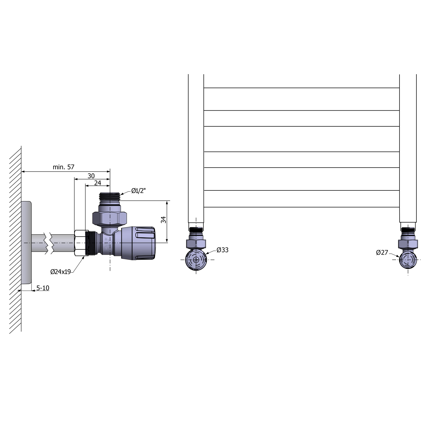 Zpětný ventil je skryt pod ozdobnou krytkou. Uzavírá se pomocí hexagonálního klíče. Neslouží k regulaci teploty, pouze k uzavření potrubí, např. v případě demontáže otopného tělesa, bez nutnosti vypuštění topného média.