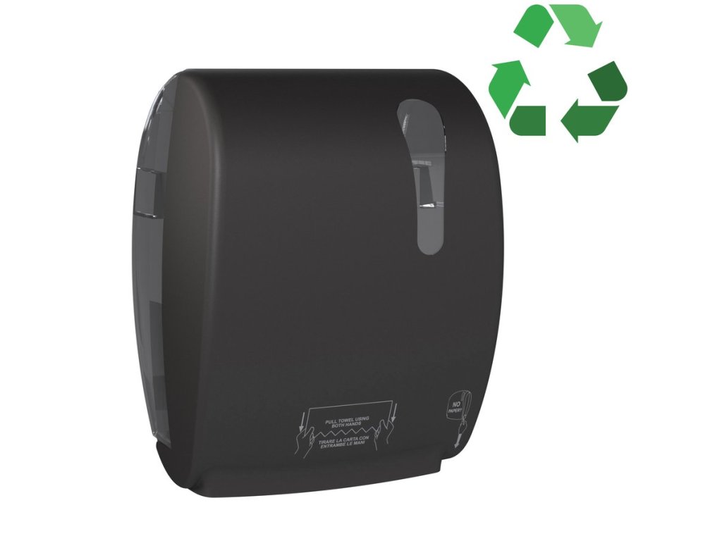 Plastový zásobník na papírové ručníky v roli s automatickým ořezem. Výkonný řezací mechanismus umožňuje plynulé dávkování po jednom útržku. Velká kapacita snižuje nutnost častého doplňování. Ideální pro rušné toalety např. ve školách, továrnách nebo na letištích. Polotransparentní okénko poskytuje dobrý přehled, kdy je třeba obsah doplnit.
