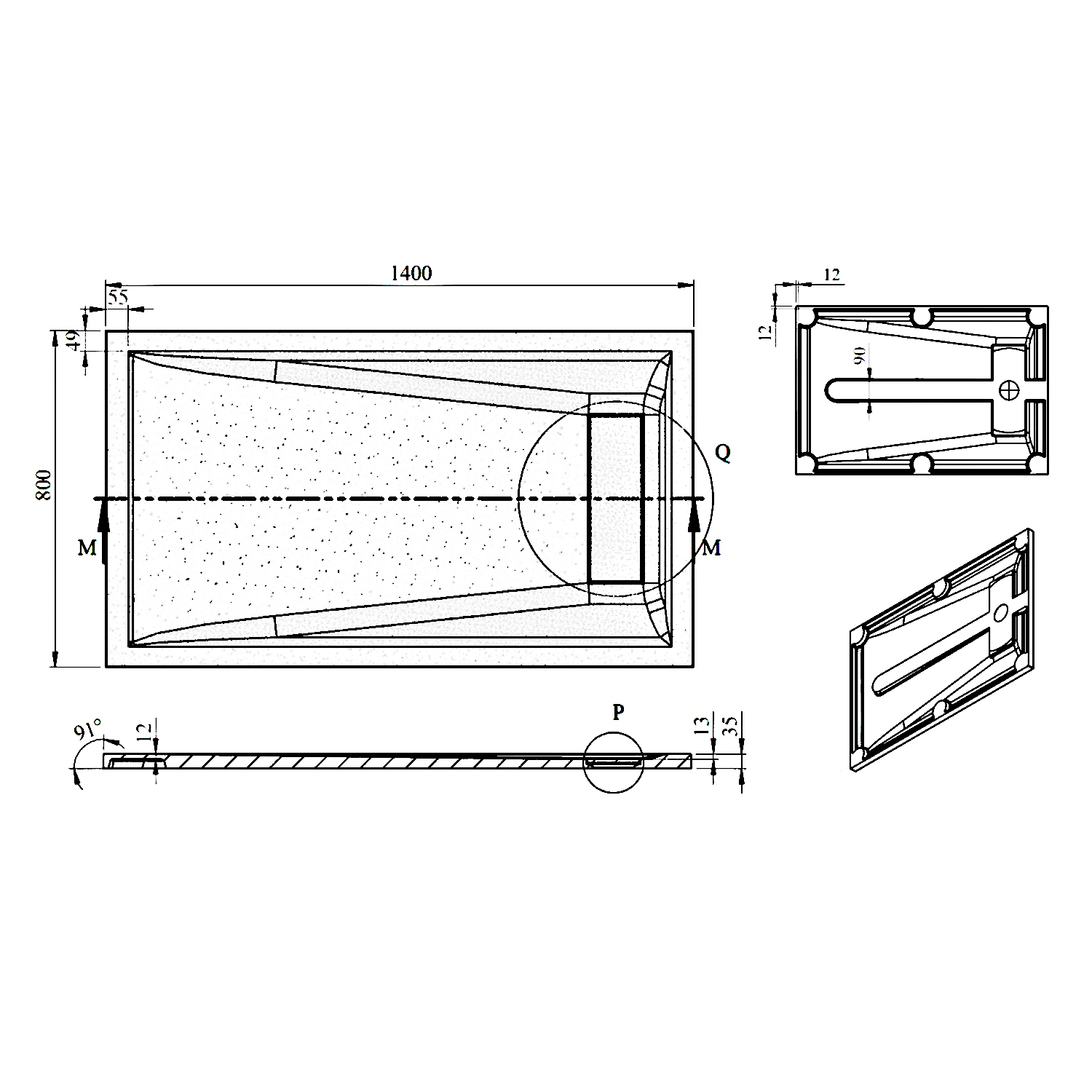ELEA sprchová vanička litý mramor, 140x80cm, bílá