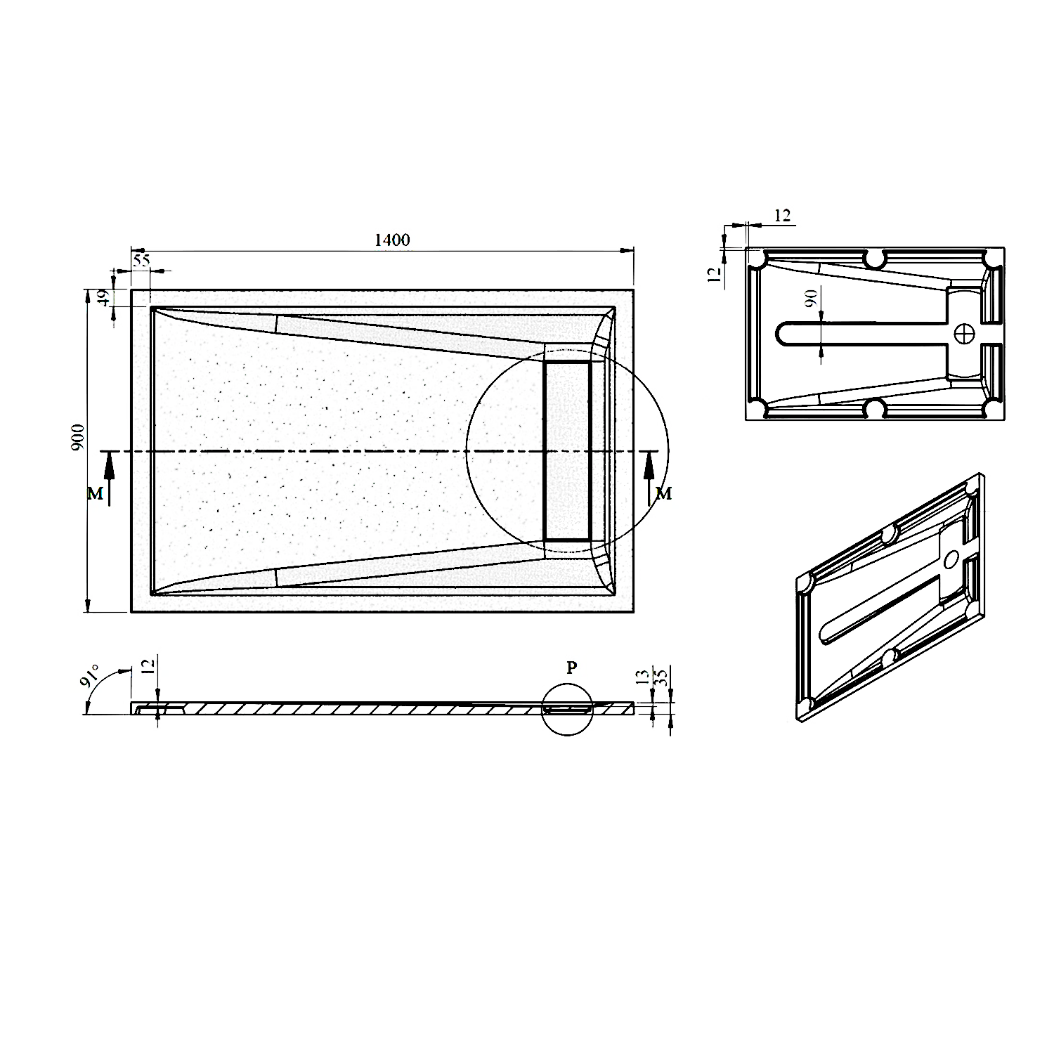 ELEA sprchová vanička litý mramor, 140x90cm, bílá