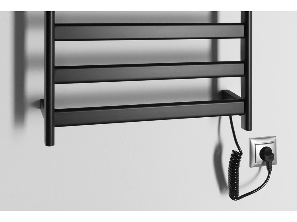 Elektrická otopná tělesa z lakované nerez oceli ELIAS jsou určena k nahřívání a sušení ručníků, což oceníte zejména v zimním období. Vnitřek otopného tělesa je vyroben z uhlíkového vlákna (bez použití kapalné plnící směsi), což zajišťuje skvělou tepelnou vodivost. Podsvětlený vypínač je integrován v pravé horní části. Těleso lze zapojit přímo do elektrické zásuvky díky kroucenému kabelu o délce 1,2 m, který je umístěn vpravo dole a nelze ho pozičně měnit.