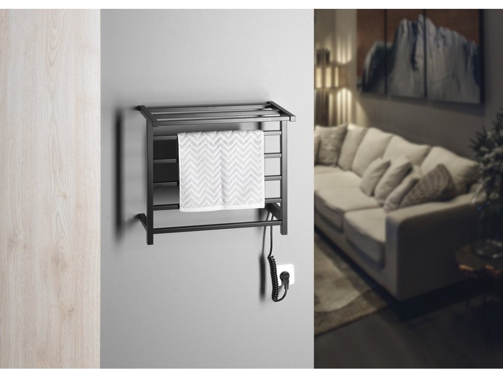 ELZOR elektrický sušák ručníků 500x470 mm, 60 W, černá mat
