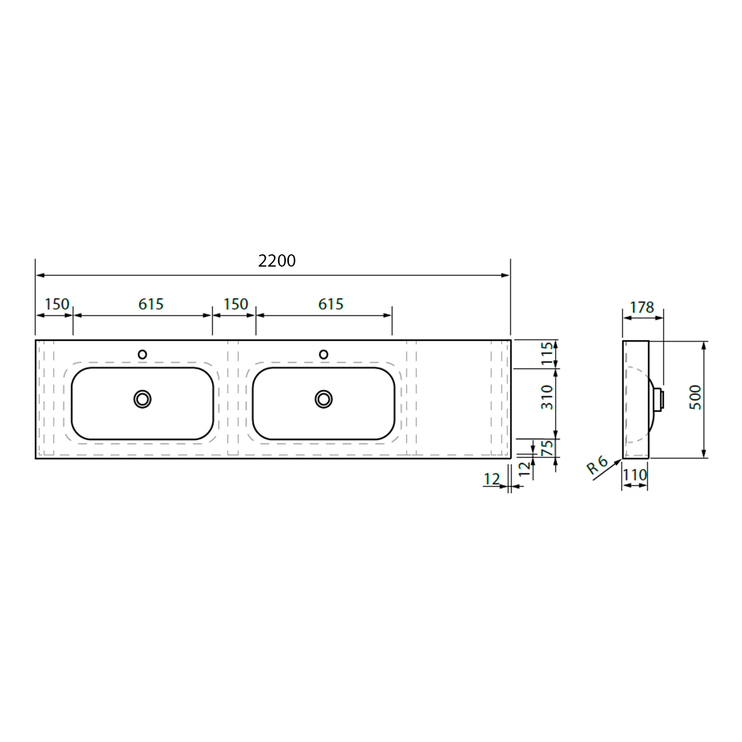 EMICO dvojumyvadlo, Rockstone, 220x50cm, límec L, levé, bílá mat