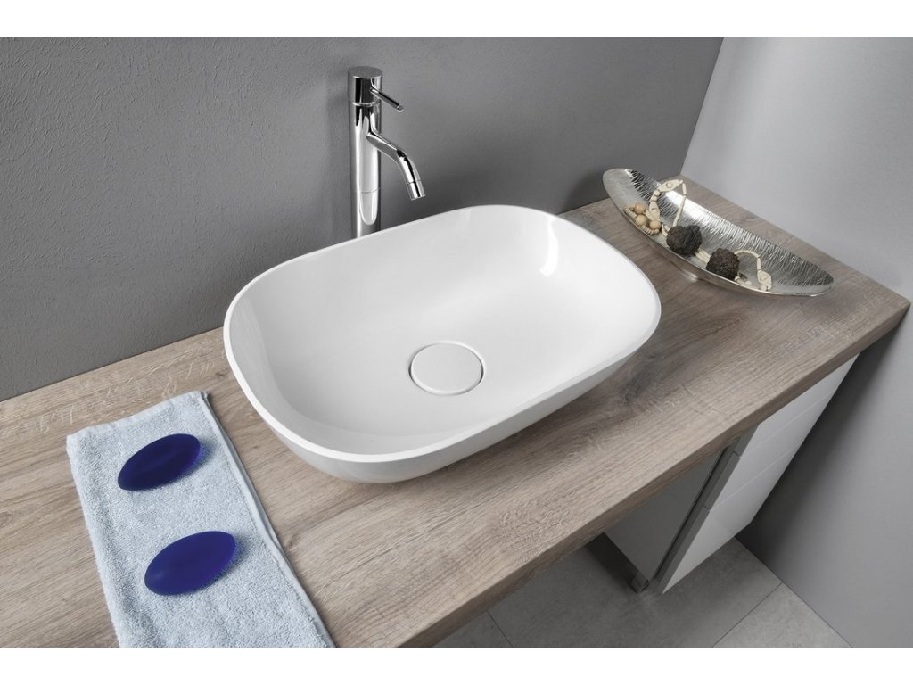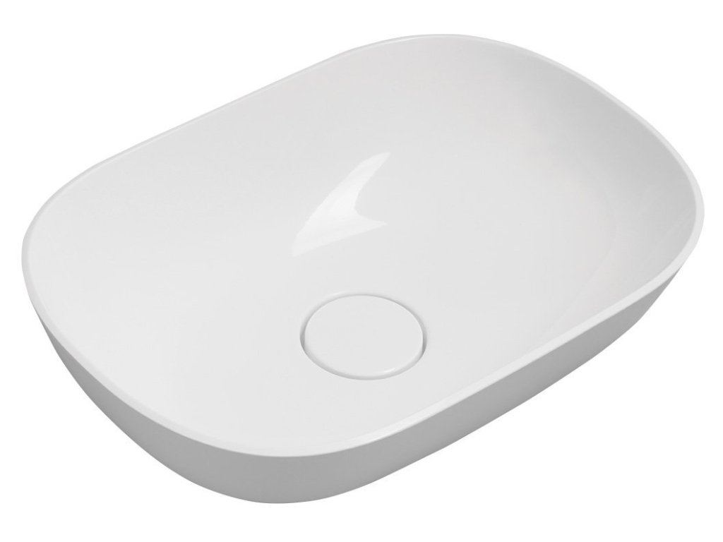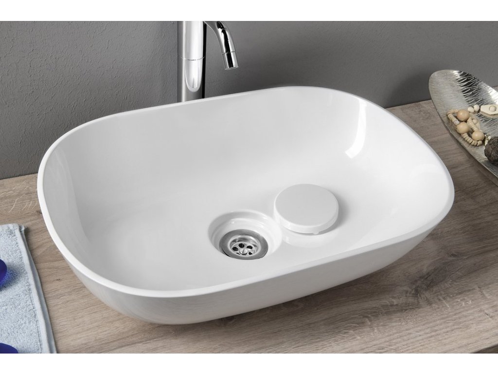 ERIDAN umyvadlo na desku, litý mramor, 50x35cm, kryt výpusti, bílá