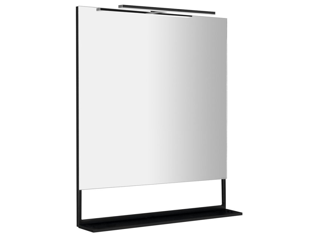 ERUPTA zrcadlo s LED osvětlením a policí 80x80cm, černá mat