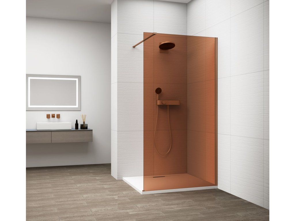 ESCA COPPER MATT jednodílná sprchová zástěna k instalaci ke stěně, sklo Marron, 1100 mm