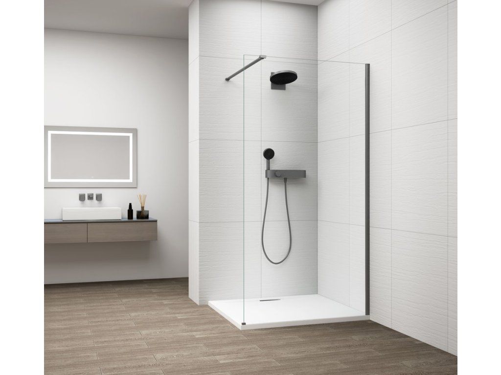 ESCA GUN METAL jednodílná sprchová zástěna k instalaci ke stěně, sklo čiré, 1300 mm