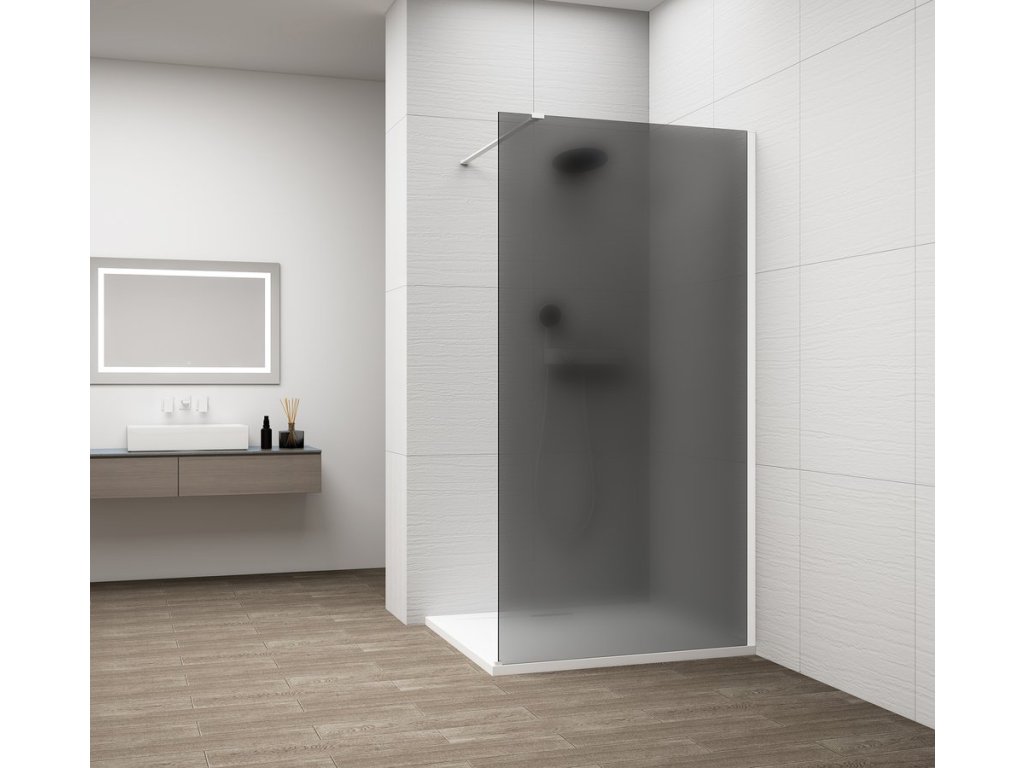 ESCA WHITE MATT jednodílná sprchová zástěna k instalaci ke stěně, kouřové matné sklo, 900 mm