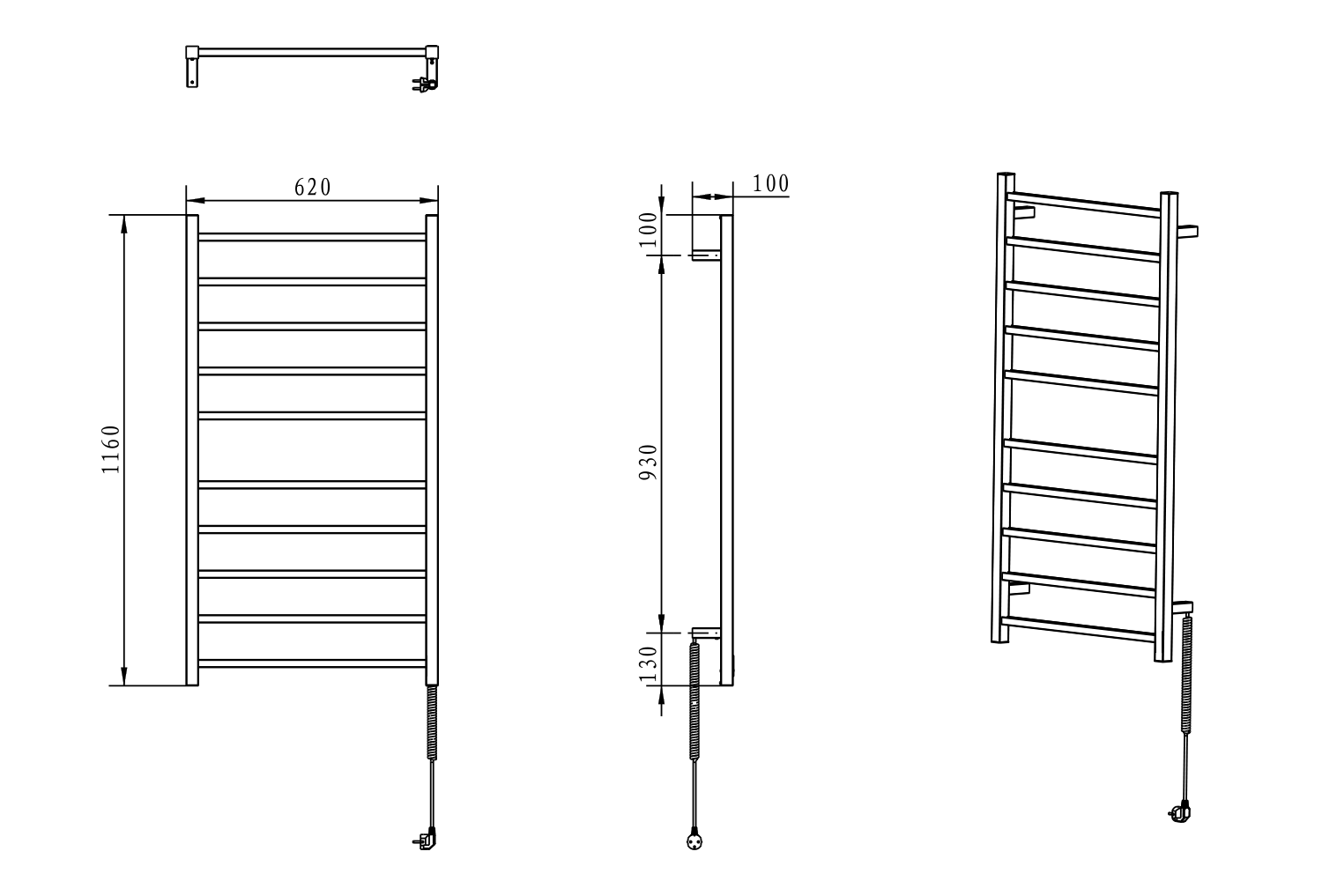 ESKINADO elektrický sušák ručníků, hranatý, 620x1160 mm, 120 W, nerez lesk