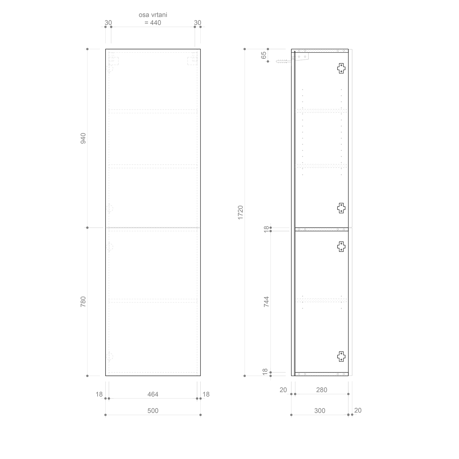Charakteristickým rysem série doplňkových skříněk ESPACE je variabilita díky široké nabídce rozměrů jak dvířkových, tak otevřených skříněk. Série ESPACE byla navržena pro kombinaci s většinou umyvadlových skříněk z naší nabídky, avšak skříňky naleznou využití i v jiných prostorách než je koupelna (obývací pokoj, předsíň apod.).
