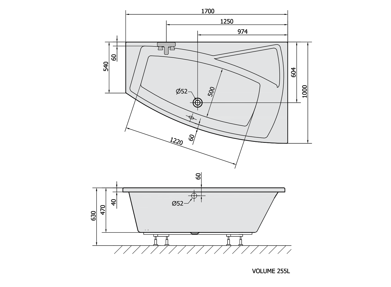 EVIA R asymetrická vana 170x100x47cm, bílá
