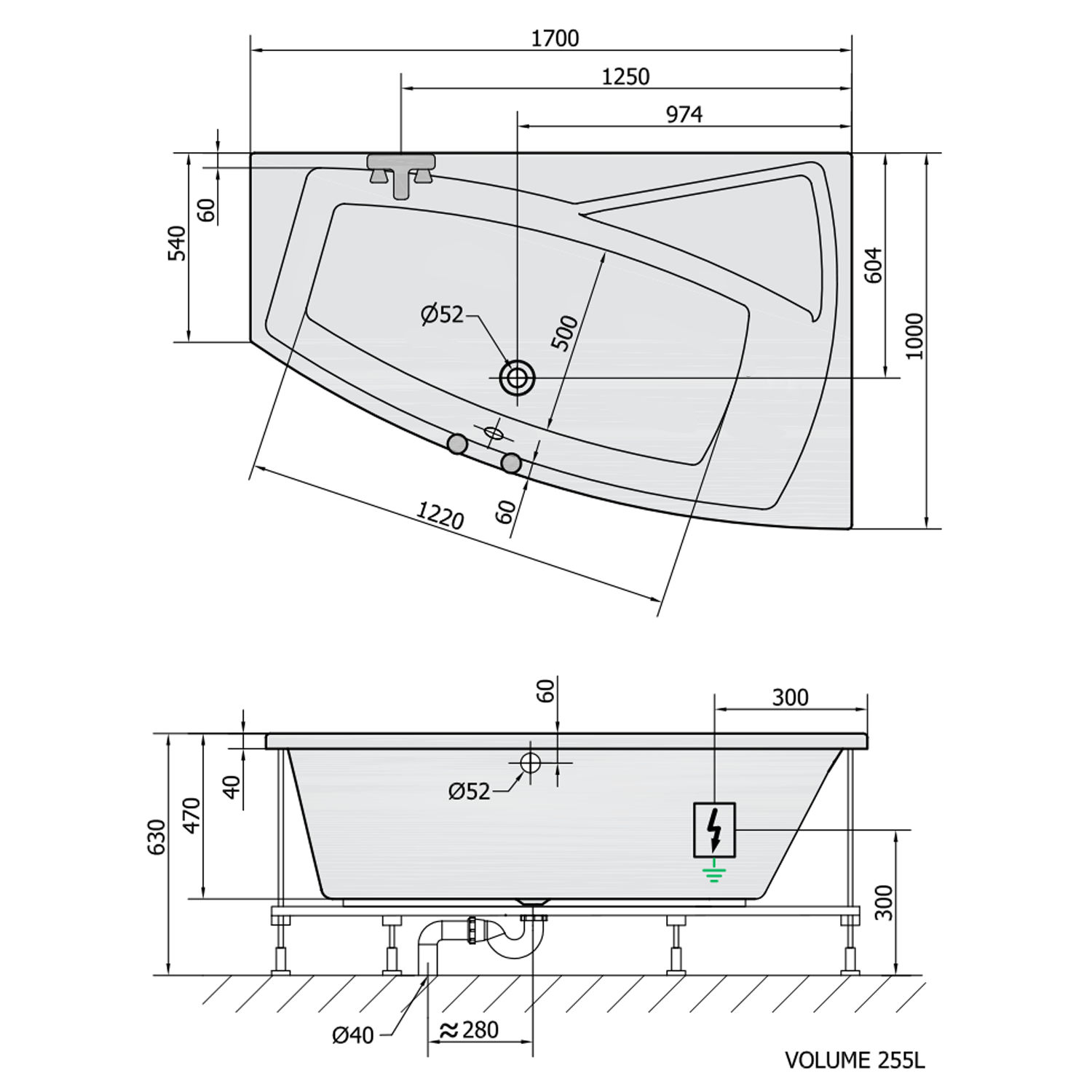 EVIA R hydromasážní vana, 170x100x47cm, Active Hydro-Air, chrom