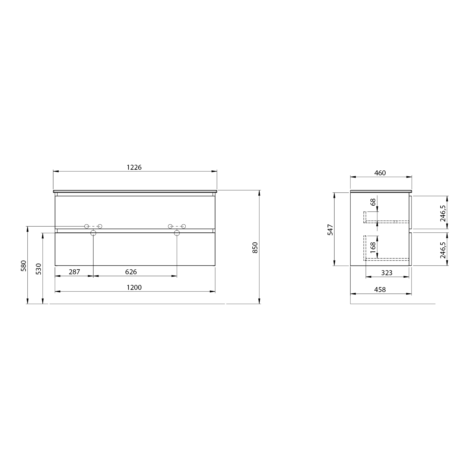 EZARA dvojumyvadlová skříňka 120x55x46cm, dub stříbrný
