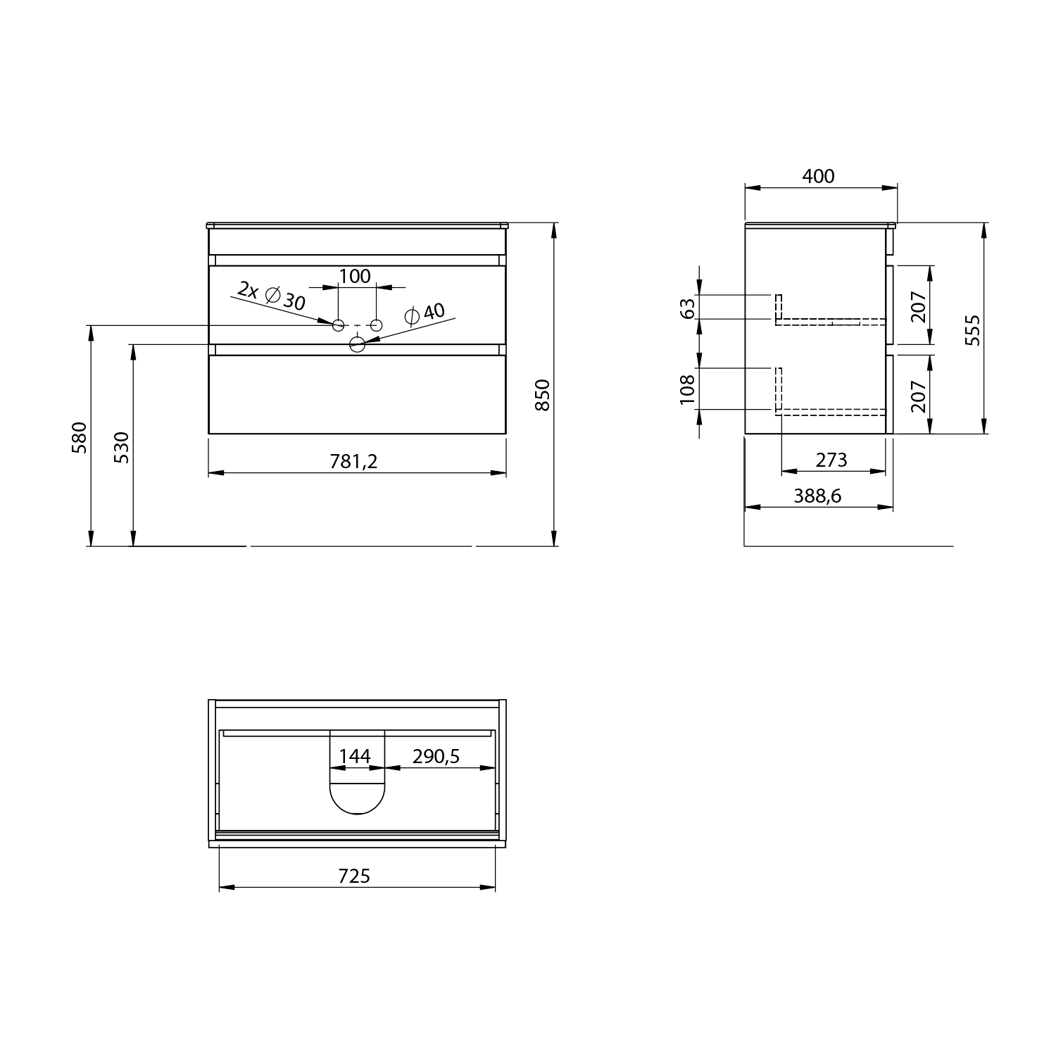 Zásuvky jsou vybaveny výsuvy s pomalým dojezdem a automatickým dovřením. Úložný prostor lze rozšířit přidáním doplňkových skříněk ESPACE. Nábytek je dodáván ve smontovaném stavu, připravený k okamžité instalaci.
