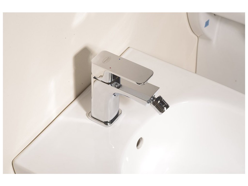 Série pákových baterií FACTOR je charakteristická kombinací hranatých tvarů a zaoblených rohů.