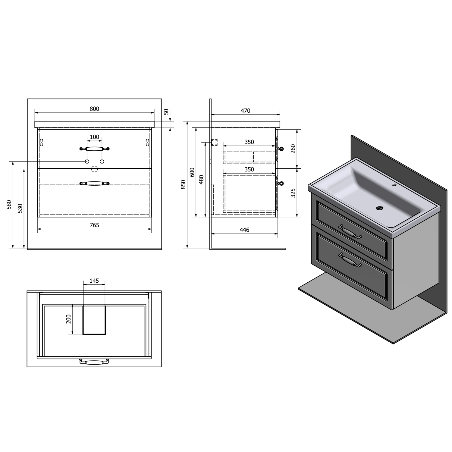 | Typ skříňky: | Zásuvky |