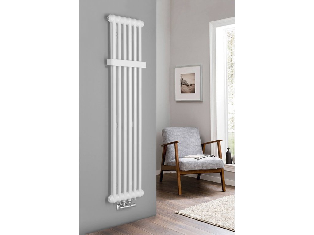 Trubkový radiátor FEDE ve dvou velikostech o šesti anebo deseti segmentech a barevných variantách bílá mat a černá mat lze doplnit o praktické madlo.